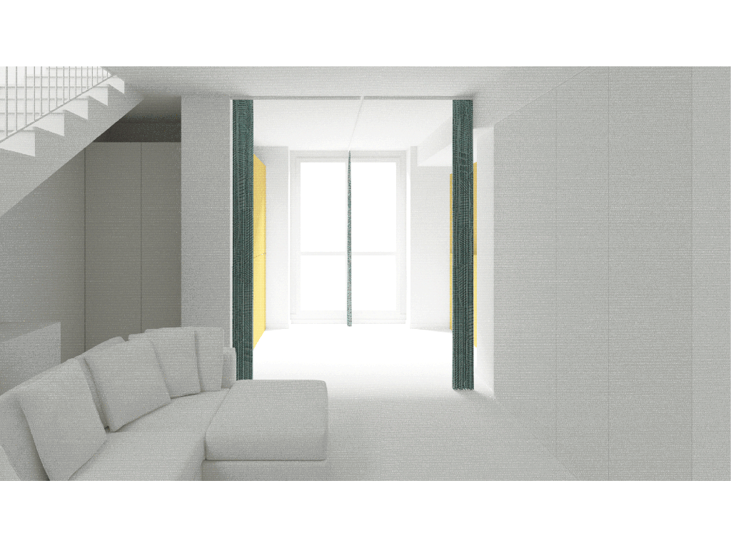 Proposta di arredo per un appartamento su due livelli preso in locazione da una giovane coppia. Il piano inferiore è destinato a zona giorno con balconcino e loggiato e al piano superiore vi è un sottotetto openspace con tetto in legno a vista: la proposta riguarda la disposizione dell’area living, nella quale un grande divano funge anche da schienale per la panca del tavolo da pranzo, così da poter ospitare diversi ospiti in poco spazio, e la disposizione della zona notte, dove gli spazi con altezza minore vengono sfruttati per posizionare elementi contenitivi e i grandi lucernari fungono da occasioni per collocarvi la zona studio e il letto matrimoniale.